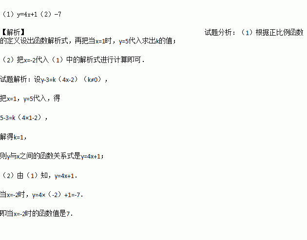 已知y-3与4x-2成正比例,且当x=1时,y=5.