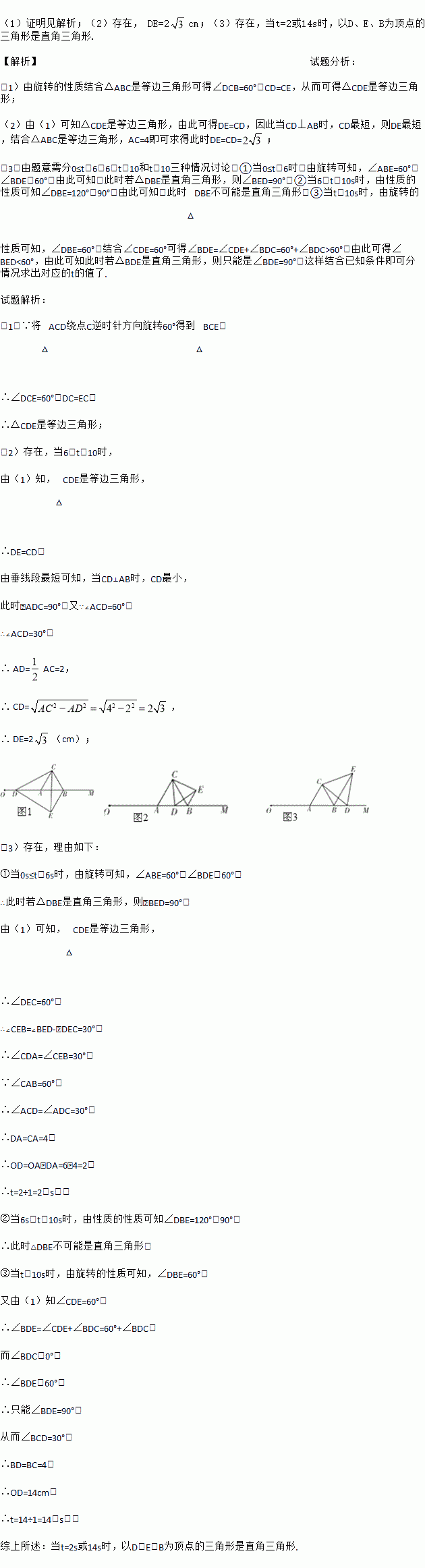 出发,沿OM的方向以1cm/s的速度运动,当D不与点A重合时,将
