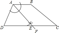 分析:(1)如图,以A为圆心,任意长为半径作弧,和AB、AD分别有交点,然后以两个交点为圆心以大于二分之一交点距离为半径作弧,两弧的交点为E,作射线AE就是∠DAB的角平分线AF;