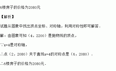 兰州市“安居工程”新建成的一批楼房都是8层高,房子的价格y(元/平方米)随楼层数x(楼)的变化而变化(x=1,2,3,4,5,6,7,8);已知点(x,y)都在一个二次函数的图象上(如图所示),则6楼房子的价格为 元/平方米.