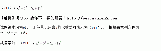 题意是:有一正方形池塘,边长为一丈,有棵芦苇长在它的正中央,高出水面部分有一尺长,把芦苇拉向岸边,恰好碰到岸沿,问水深和芦苇长各是多少?(小知识:1丈=10尺)
