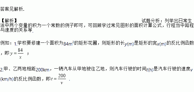 举出几个日常生活中反比例函数的实例.