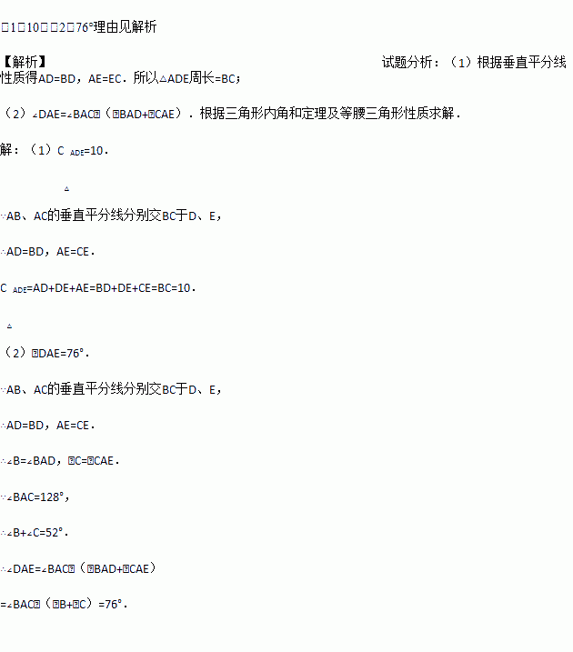 (1)若BC=10,则△ADE周长是多少?为什么?