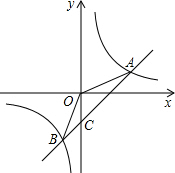 点评:本题主要考查了待定系数法求反比例函数与一次函数的解析式.运用数形结合的方法求图形的面积,做此类题要根据图形的特点,将所求三角形的面积问题划分为两个三角形求解.