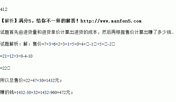 请问该服装店售完这30件衣服后,赚了多少钱?