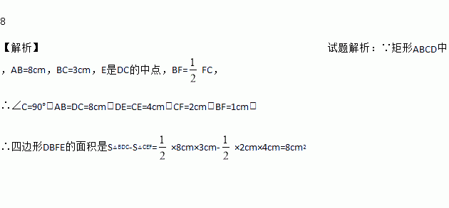 如图,矩形ABCD中,AB=8cm,BC=3cm,E是DC的中点,BF=
