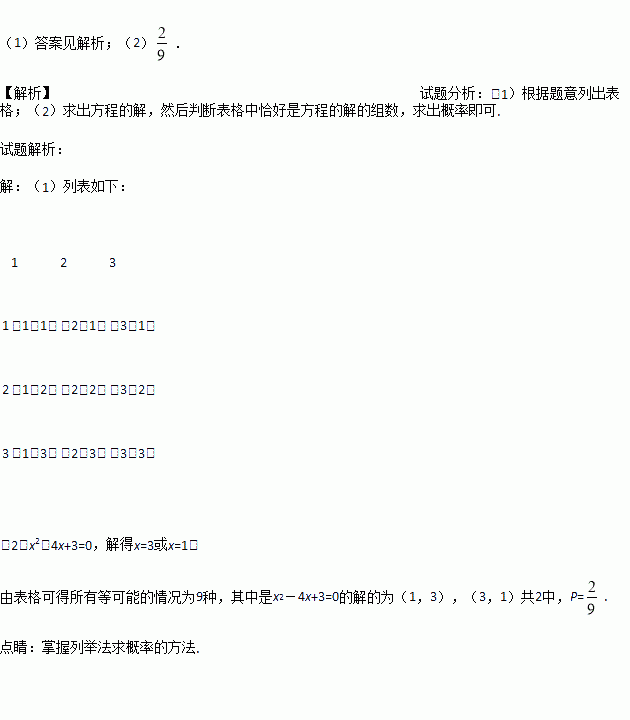 (2)求每次游戏后得到的一组数恰好是方程x2﹣4x+3=0的解的概率.