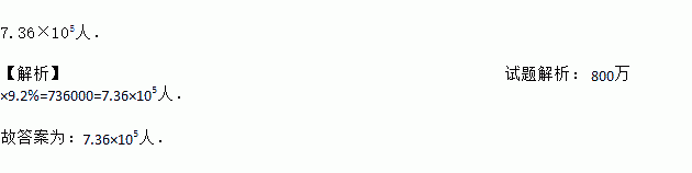 在第六次全国人口普查中,南京市常住人口约为800万人,其中65岁及以上人口占9.2%,则该市65岁及以上人口用科学记数法表示约为______.