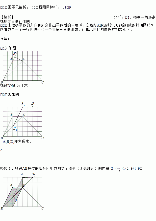 (2)①画出将△ABD先向右平移2格,再向上平移2格得到的△A1B1D1;