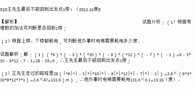 (1)请你通过计算说明李先生最后是否回到出发点1楼;