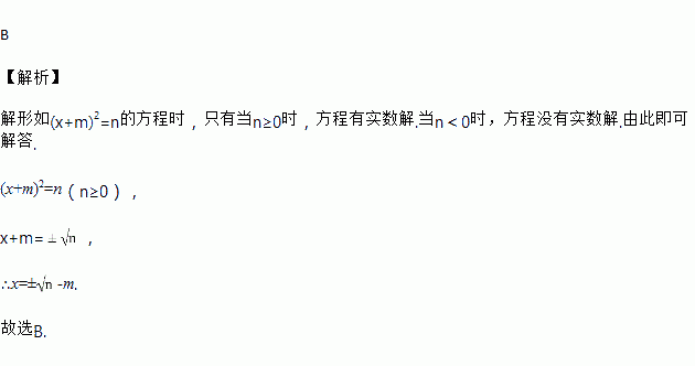 A. 可用直接开平方法求得根x=± B. 当n≥0时,x=±-m
