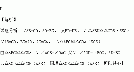 如图,AC与BD相交于点O,已知AB=CD,AD=BC,则图中全等的三角形有( )