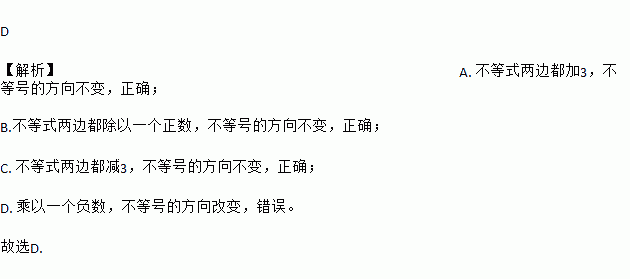 A. x-3>y-3 B. C. x+3>y+3 D. -3x>-3y