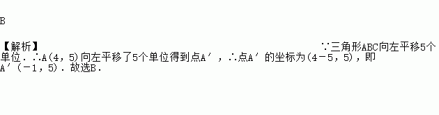 (2012四川雅安)在平面直角坐标系中,三角形ABC的三个顶点坐标分别是A(4,5),B(1,2),C(4,2),将三角形ABC向左平移5个单位后,A点的对应点A′的坐标是( )