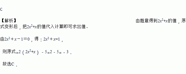 若2x2+x-1=0,则4x2+2x-5的值为( )