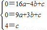 设抛物线的解析式为y=ax2+bx+c(4分)