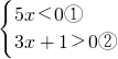 由①得,x<0,
