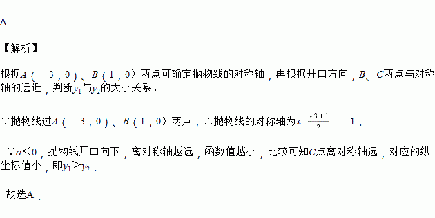 已知抛物线y=ax2+bx+c(a<0)过A(-3,0),B(1,0),C(-5,y1),D(5,y2)四点,则y1与y2的大小关系是( )