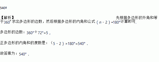 正多边形的一个外角是72°,则这个多边形的内角和的度数是_____.