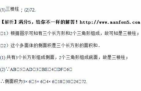 (2)若AC=3,BC=4,AB=5,DF=6,计算这个多面体的侧面积.
