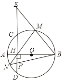 (3)直线BM交直线CD于点E,直线MH交⊙O 于点 N,连接BN交CE于点 F,求HEHF的值.