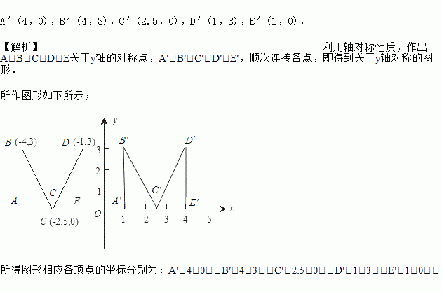 如图所示,作字母“M”关于y轴的轴对称图形,并写出所得图形相应各顶点的坐标.