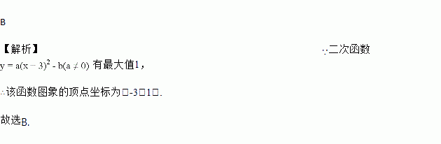 已知二次函数y=a(x+3)2-h(a≠0)有最大值1,则该函数图象的顶点坐标为( )