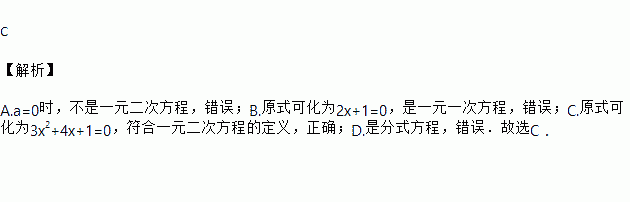 A. ax2+bx+c=0 B. x2+2x=x2﹣1