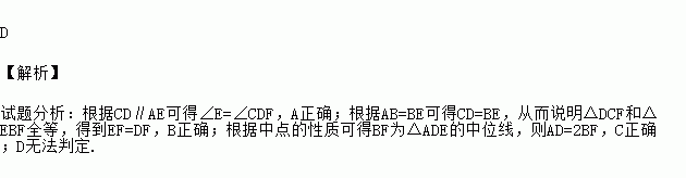 A.∠E=∠CDF B.EF=DF C.AD=2BF D.BE=2CF