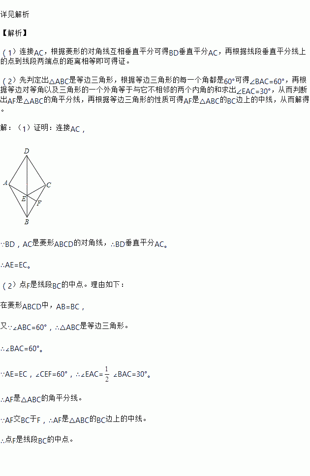 已知:如图,在菱形ABCD中,F是BC上任意一点,连接AF交对角线BD于点E,连接EC.