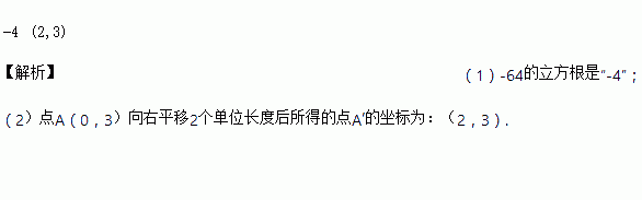 -64的立方根是_____.点A(0,3)向右平移2个单位长度后所得的点A′的坐标为_____.