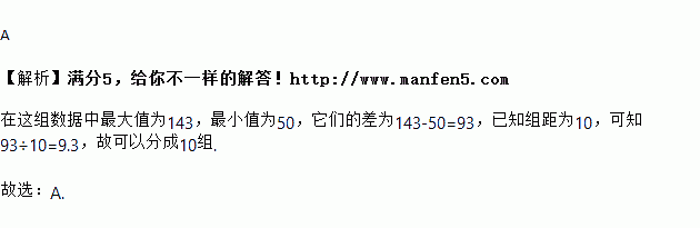 一个容量为80的样本最大值是143,最小值是50,取组距为10,则可以分成( )