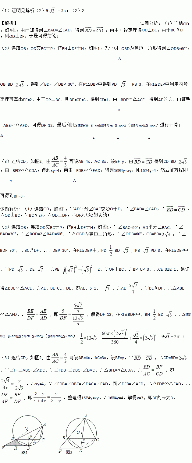 如图1,△ABC内接于⊙O,∠BAC的平分线交⊙O于点D,交BC于点E(BE>EC),且BD=2