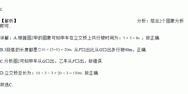 C. 甲车从F口出,乙车从G口出 D. 立交桥总长为150m