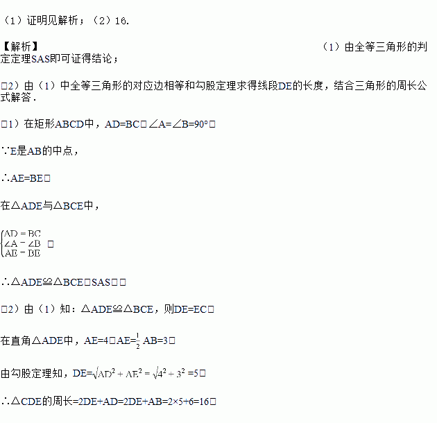 如图,在矩形ABCD中,E是AB的中点,连接DE、CE.