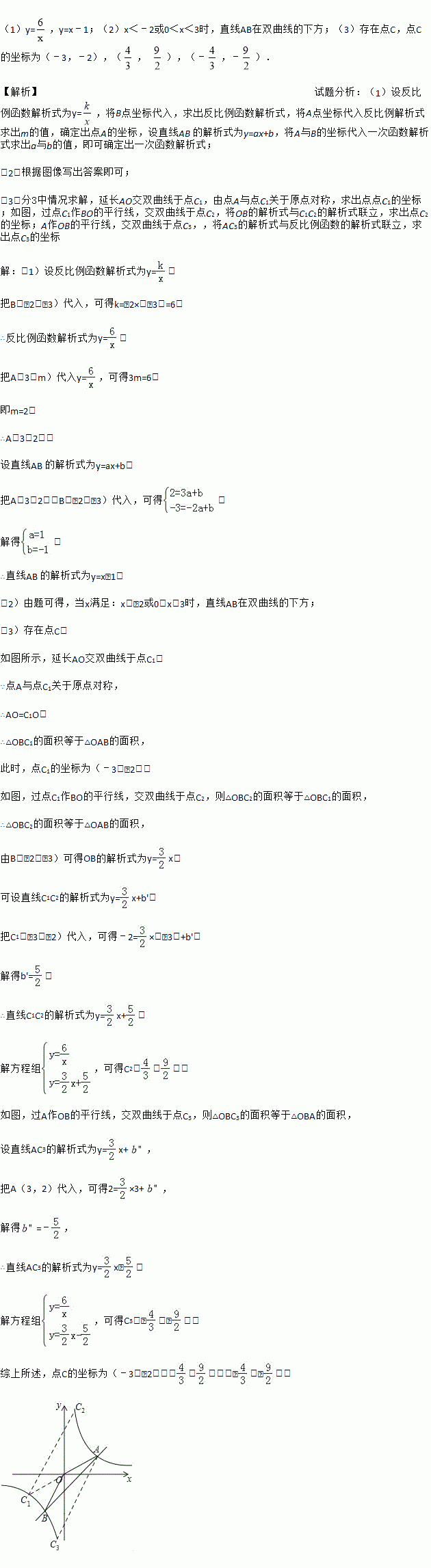 (3)反比例函数的图象上是否存在点C,使得△OBC的面积等于△OAB的面积?如果不存在,说明理由;如果存在,求出满足条件的所有点C的坐标.