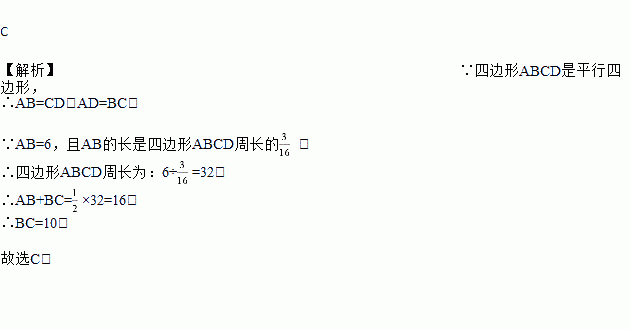 如果四边形ABCD是平行四边形,AB=6,且AB的长是四边形ABCD周长的,那么BC的长是( )