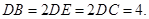 中,∠C=90°,DC = 2,∠CAB的平分线AD交BC于点D,DE垂直平分AB.求∠B的度数和DB的长.![]()
