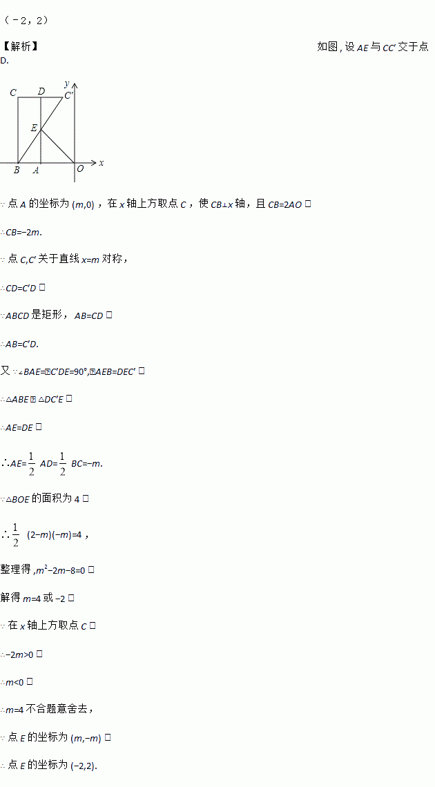 如图,已知点A的坐标为(m,0),点B的坐标为(m﹣2,0),在x轴上方取点C,使CB⊥x轴,且CB=2AO,点C,C′关于直线x=m对称,BC′交直线x=m于点E,若△BOE的面积为4,则点E的坐标为_____.