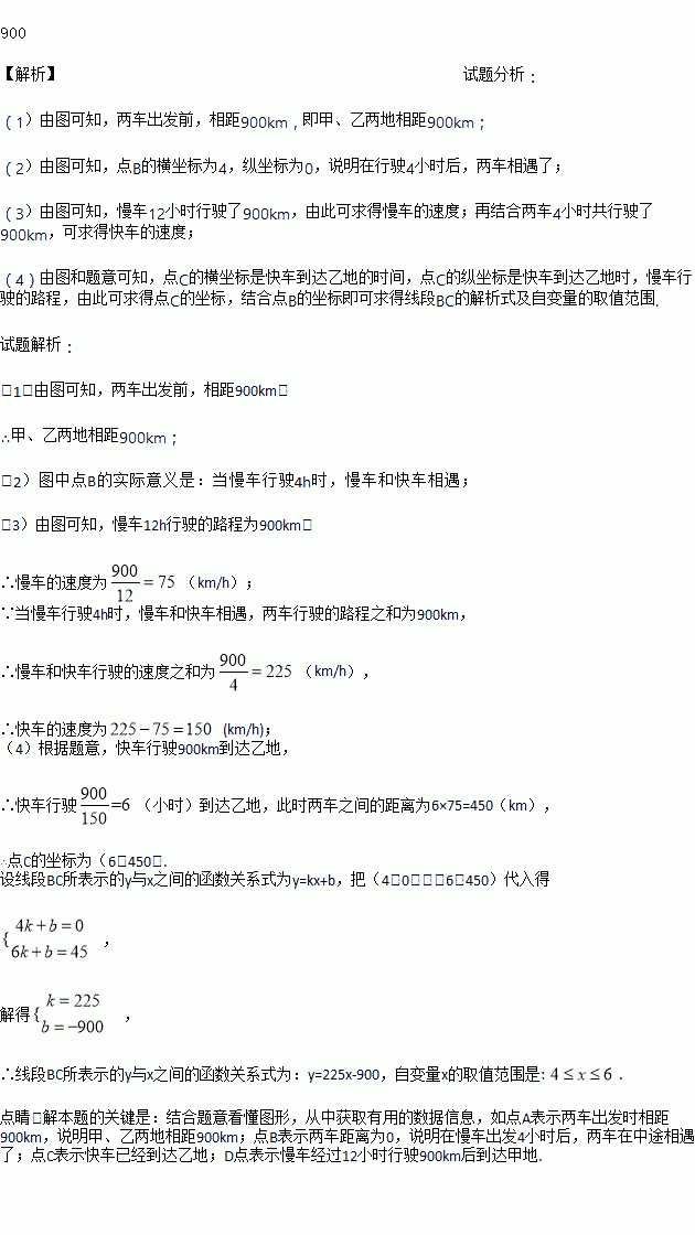 (4)求线段BC所表示的y与x之间的函数关系式,并写出自变量x的取值范围;