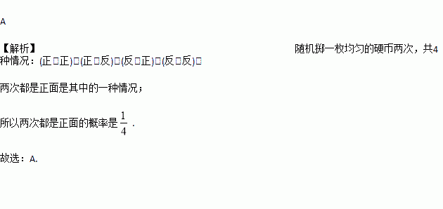 随机掷一枚均匀的硬币两次,两次都是正面的概率是( )