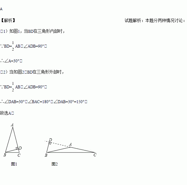 A. 30°或150° B. 75°或15° C. 75° D. 30°