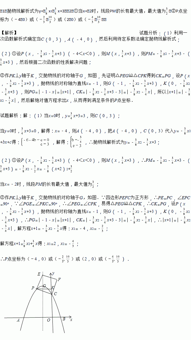 ①若点P在第二象限,过点P作PN⊥x轴于N,交直线AC于点M,求线段PM关于x的函数解析式,并求出PM的最大值;
