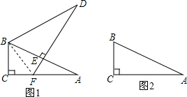 将两个全等的直角三角形ABC和DBE按图1方式摆放,其中∠ACB=∠DEB=90°,∠A=∠D=30°,点E落在AB上,DE所在直线交AC所在直线于点F.