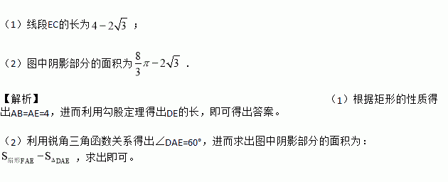 如图,在矩形ABCD中,AB=2DA,以点A为圆心,AB为半径的圆弧交DC于点E,交AD的延长线于点F,设DA=2.