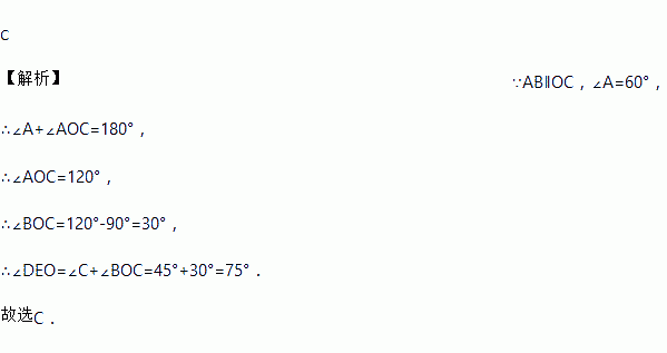 如图,将一副三角尺叠放在一起,使直角的顶点重合于点O,AB∥OC,DC与OB交于点E,则∠DEO的度数为( )
