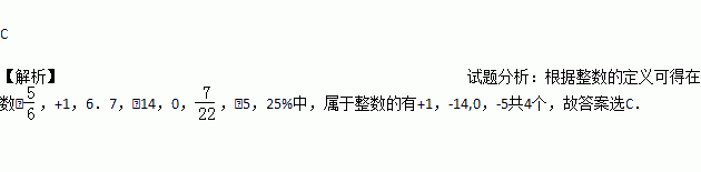 ,﹣5,25%中,属于整数的有( )
