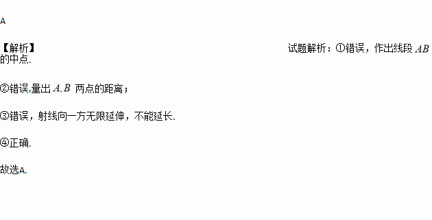 有下列画图语句:①画出线段A,B的中点;②画出A,B两点的距离;③延长射线OP;④连接A,B两点,其中正确的个数是 ( )