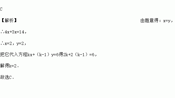 若方程组的解中与的值相等,则为( )
