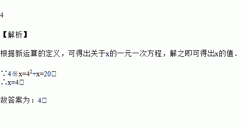 定义新运算:a※b=a2+b,例如3※2=32+2=11,已知4※x=20,则x=_____.